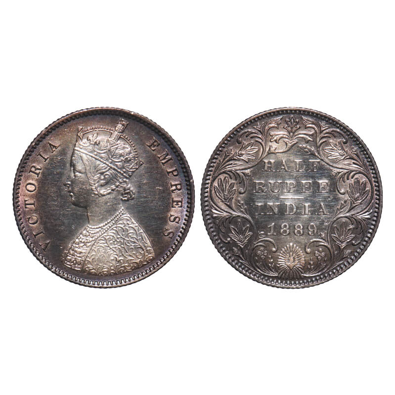 Victoria Empress, Silver, Half Rupee, 1889, Bombay Mint, A/II(i), 'B' raised, Edge nick on Obv & Rev rim edge. F. Prid 299. GK 642. About Uncirculated. Very Scarce.