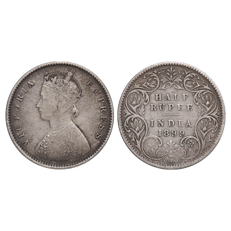 Victoria Empress, Silver, Half Rupee, 1899, Bombay Mint, A/I, 'B' incused, B incused inverted. F. Prid 307. GK 662. Very Fine+. Scarce.