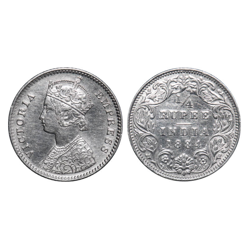 Victoria Empress, Silver, 1/4 Rupee, 1884, Bombay Mint, B/I, 'B' raised. F. Prid 416. GK 695. Extremely Fine. Rare.