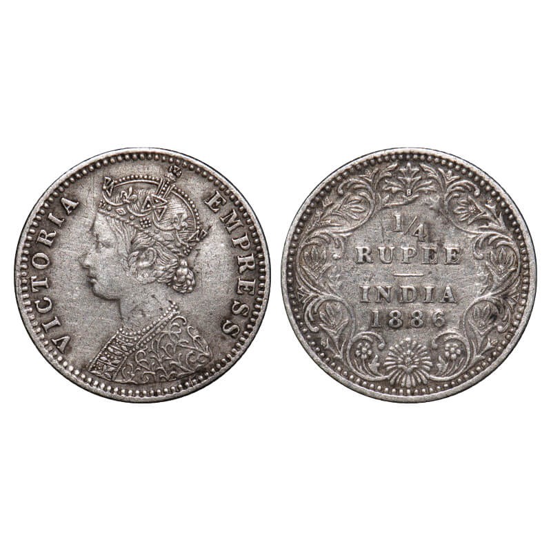 Victoria Empress, Silver, 1/4 Rupee, 1886, Calcutta Mint, C/II, 'C' incised. F. Prid 391. GK 707. V...