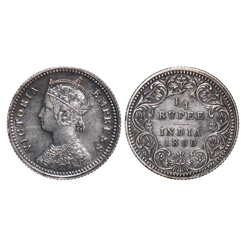 Victoria Empress, Silver, 1/4 Rupee, 1890, Calcutta Mint, C/II, 'C' incused. F. Prid. 395. GK 719. ...