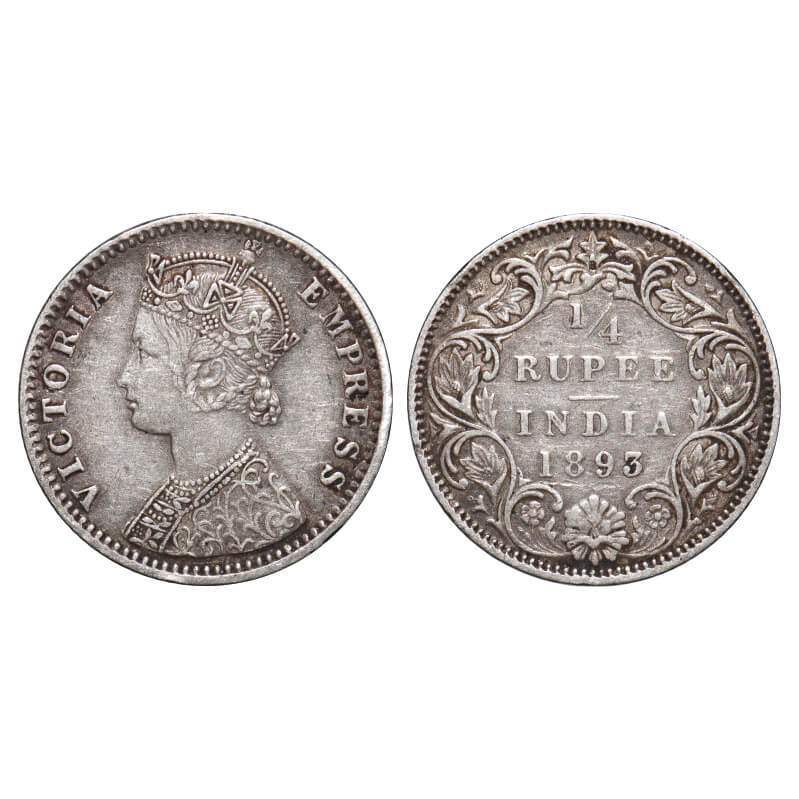 Victoria Empress, Silver, 1/4 Rupee, 1893, Bombay Mint, C(i)/I, 'B' incused. F. Prid 428. GK 724. Very Fine+. Very Scarce.