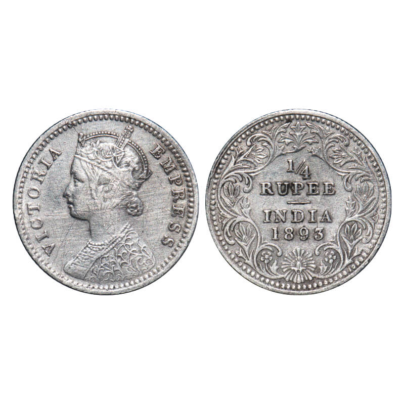 Victoria Empress, Silver, 1/4 Rupee, 1893, Calcutta Mint, C/II, 'C' incused. F. Prid 398. GK 725. Very Fine+. Scarce.