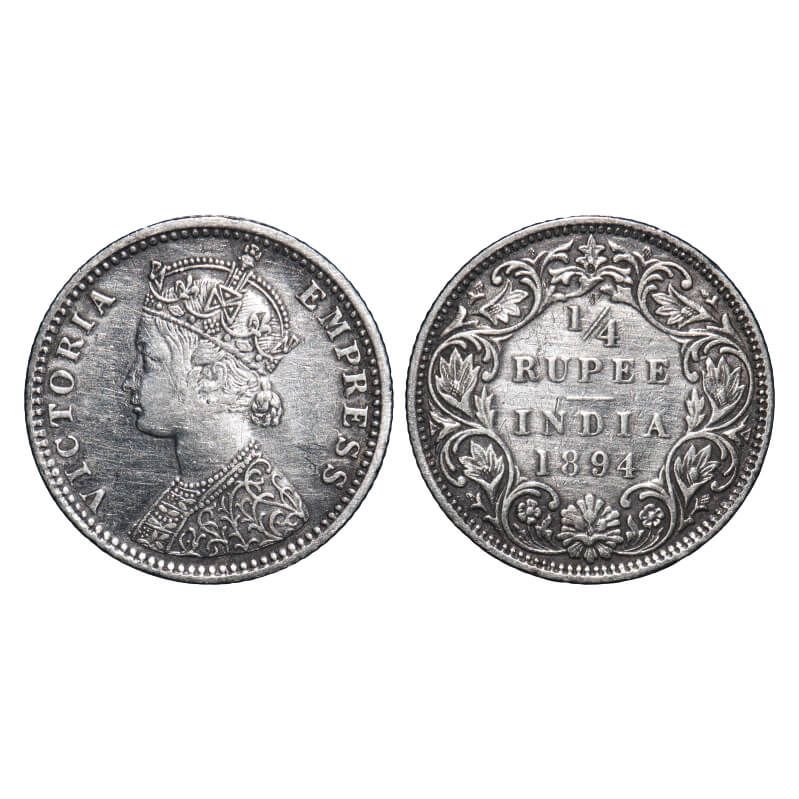 Victoria Empress, Silver, 1/4 Rupee, 1894, Bombay Mint, C(i)/I, 'B' incused. F. Prid 428. GK 726. Extremely Fine+. Very Scarce.