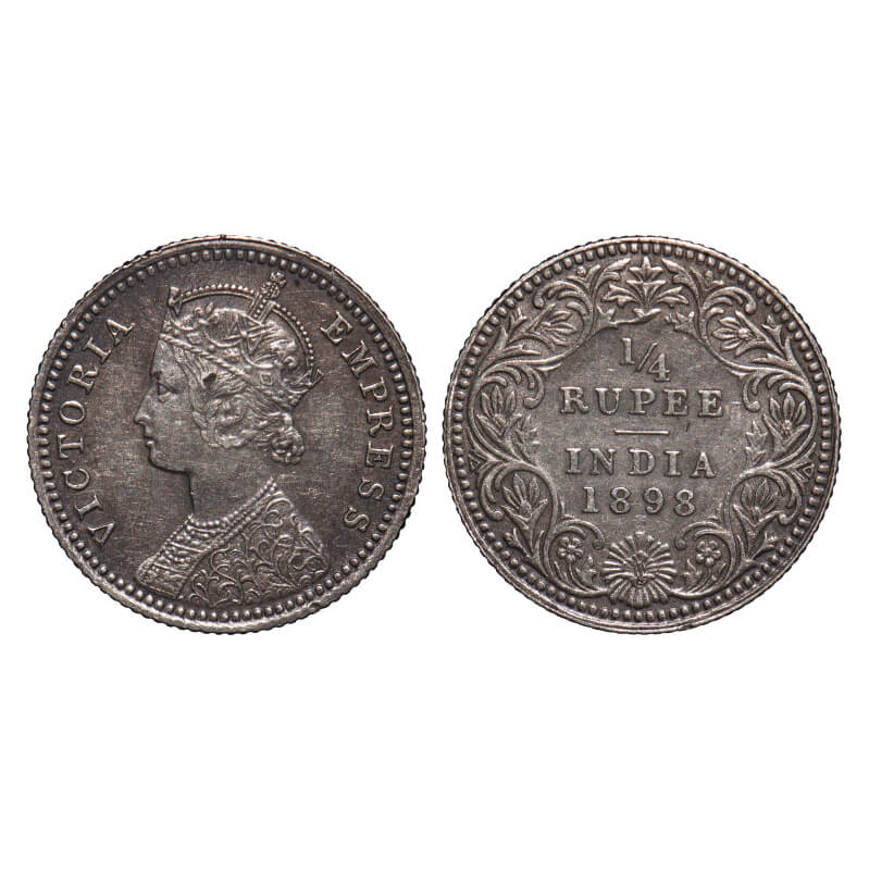 Victoria Empress, Silver, 1/4 Rupee, 1898, Calcutta Mint, C/II, 'C' incused. F. Prid. 402. GK 735. Extremely Fine. Rare.