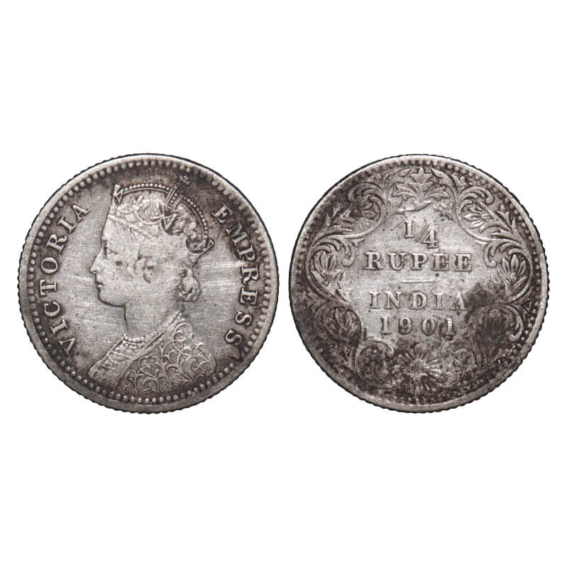 Victoria Empress, Silver, 1/4 Rupee, 1901, Calcutta Mint, C/II, 'C' incused. F. Prid. 404. GK 737. Very Fine+, Details. Very Scarce.