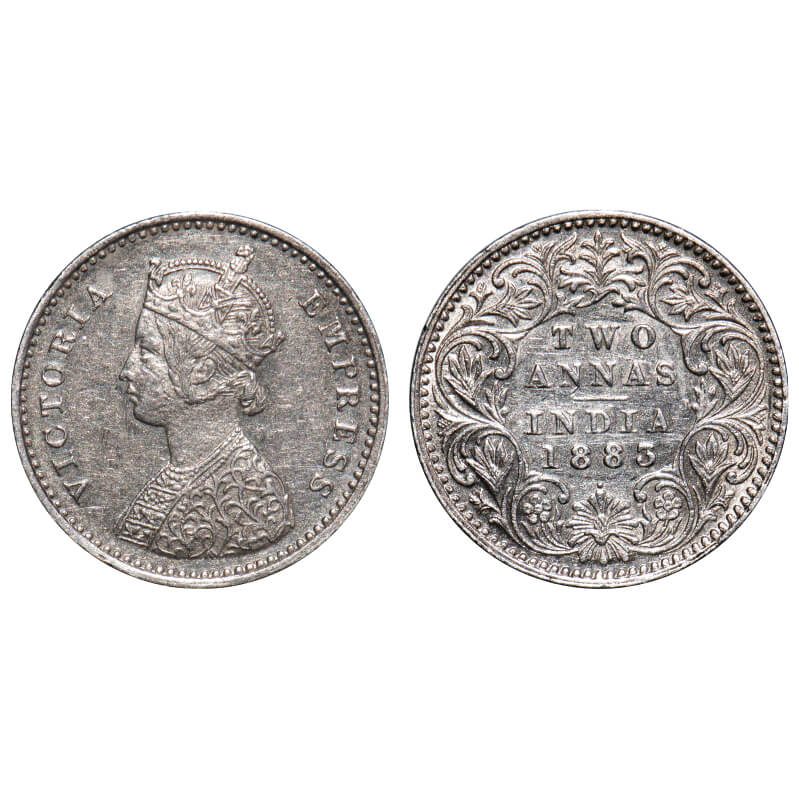 Victoria Empress, Silver, 2 Annas, (2 coins), 1885, 1) Bombay Mint, A/I, 'B' raised, 2) Calcutta Mi...