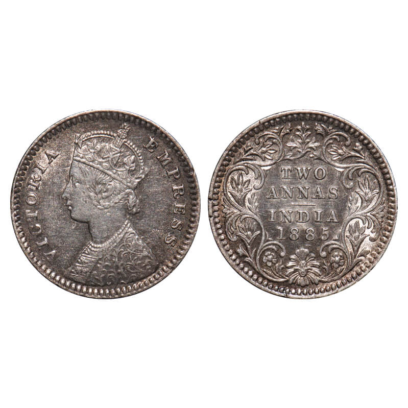 Victoria Empress, Silver, 2 Annas, 1885, Calcutta Mint, B/II, 'C' incused. F. Prid 500. GK 779. Ext...