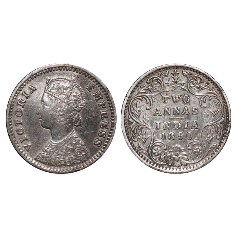 Victoria Empress, Silver, 2 Annas, 1890, Bombay Mint, B/II, 'B' incused. F. Prid 545. GK 792. Extremely Fine+. Very Scarce.
