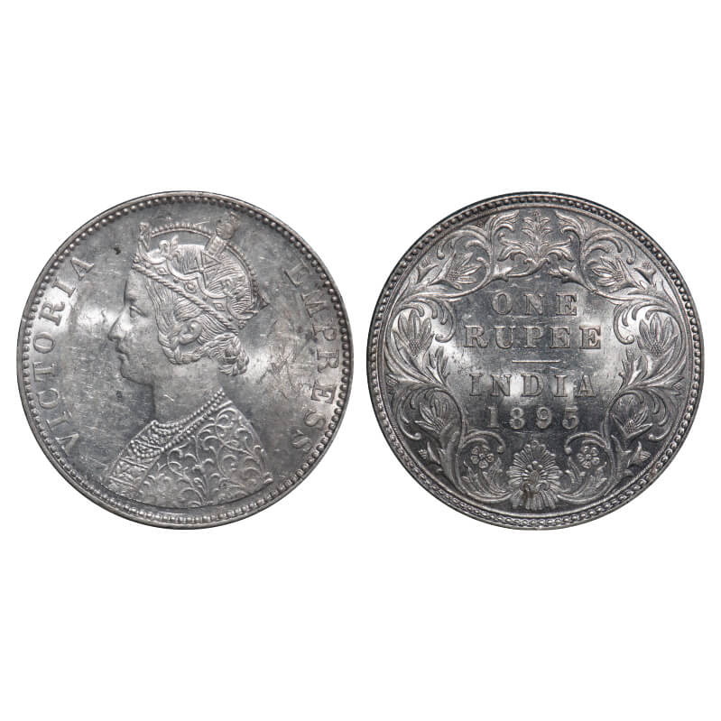 Victoria Empress, Silver, Rupee, 1893, Bombay Mint, C2/I(ii), 'B' incused, Large numeral 3. F. Prid 182. GK 579. Brilliant Uncirculated with original mint luster. Rare.