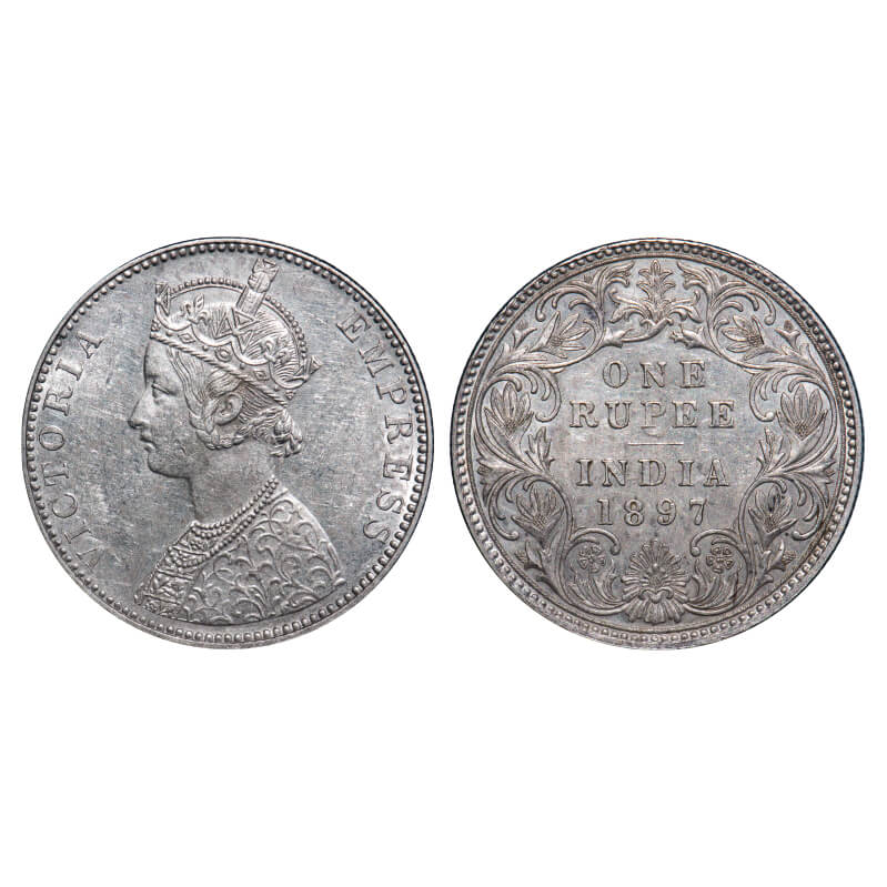 Victoria Empress, Silver, Rupee, 1897, Bombay Mint, C2/I(ii), 'B' incused. F. Prid 183. GK 581. About Uncirculated. Very Rare.
