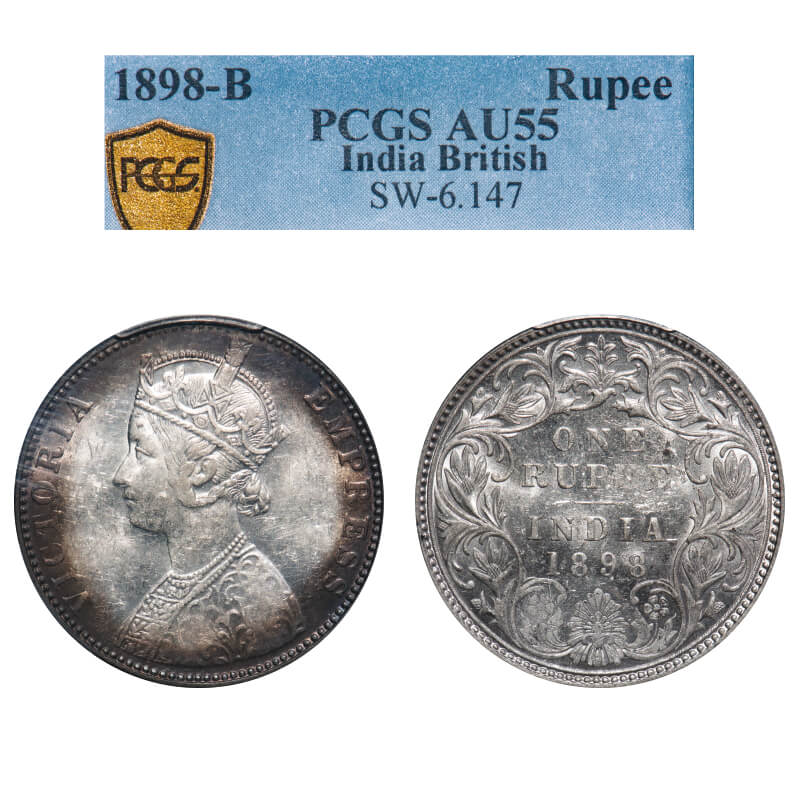 Victoria Empress, Silver, Rupee, 1898, Bombay Mint, C2/I(ii), 'B' incused. F. Prid 184. GK 585. PCGS Slabbed AU 55. Very Rare.
