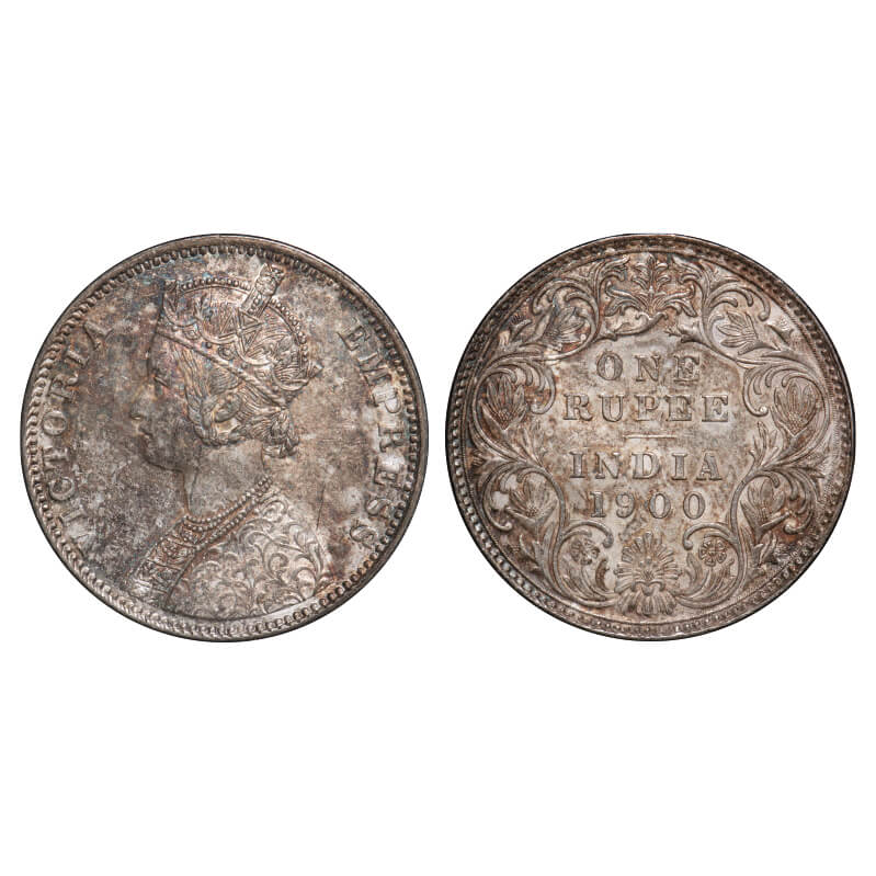 Victoria Empress, Silver, Rupee, 1900, Bombay Mint, A3(i)/I(ii), 'B' incused. F. Prid 186. GK 589. Almost Uncirculated, Rainbow Toned Obv & Rev. Very Scarce.
