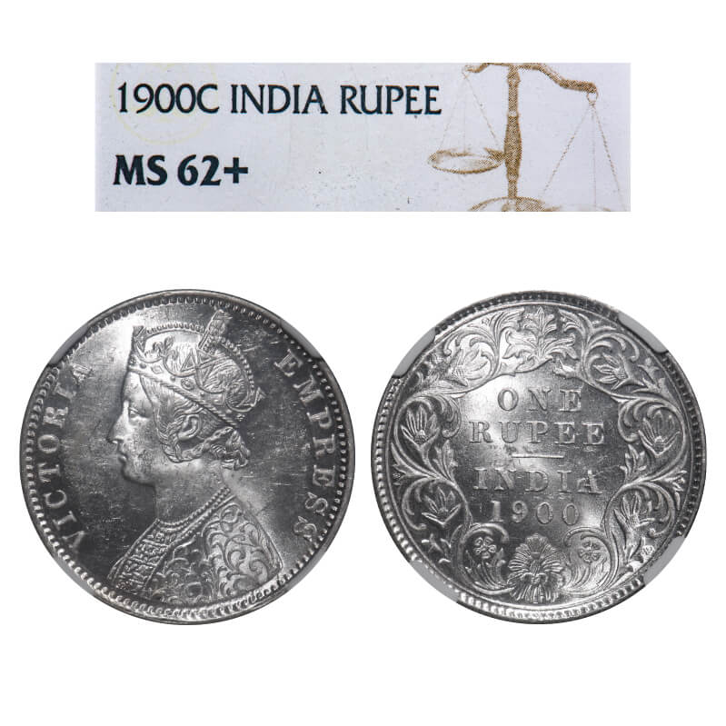 Victoria Empress, Silver, Rupee, 1900, Calcutta Mint, C3/I(i), 'C' incused. F. Prid 138. GK 590. NGC Slabbed MS 62+. Extremely Rare.