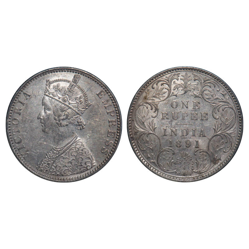 Victoria Empress, Silver, Rupee, 1891, Bombay Mint, C2/I, 'B' incused, Bottom curve of numeral 8 is broken in year date 1891. F. Prid Unlisted. GK 596. Uncirculated. Rare.