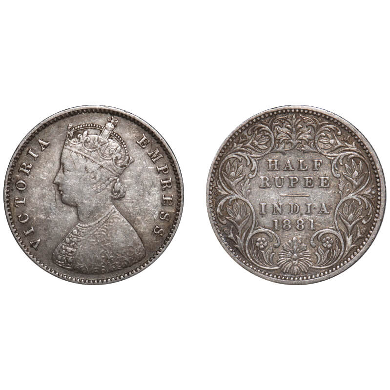 Victoria Empress, Silver, Half Rupee, 1881, Calcutta Mint, A/I, 'C' incused. F. Prid 265. GK 617. About Very Fine. Very Scarce.