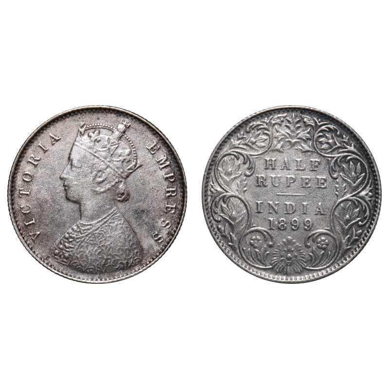 Victoria Empress, Silver, Half Rupee, 1899, Calcutta Mint, A/I, 'C' incused. F. Prid 282. GK 663. Extremely Fine. Very Scarce.