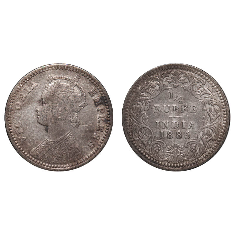 Victoria Empress, Silver, 1/4 Rupee, 1885, Calcutta Mint, C/II, 'C' incused. F. Prid 390. GK 702. Extremely Fine, Toned. Very Scarce.