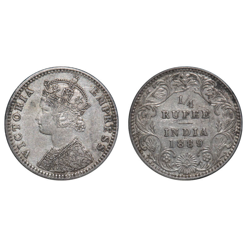 Victoria Empress, Silver, 1/4 Rupee, 1889, Bombay Mint, C(i)/II, 'B' incused. F. Prid 423. GK 715. Extremely Fine+. Very Scarce.