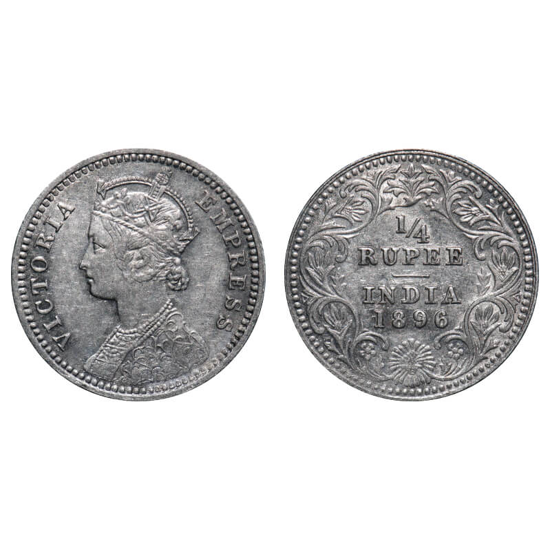 Victoria Empress, Silver, 1/4 Rupee, 1896, Calcutta Mint, C/II, 'C' incused, Ghost on Rev. F. Prid 400. GK 728. Extremely Fine+. Very Scarce.