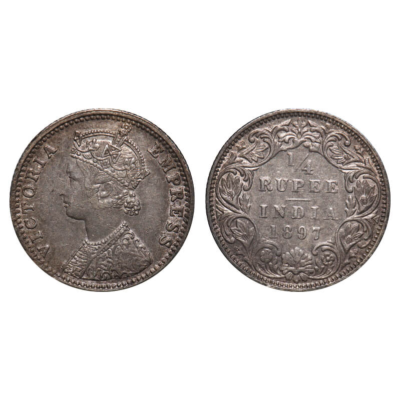 Victoria Empress, Silver, 1/4 Rupee, 1897, Bombay Mint, C(i)/I, 'B' incused. F. Prid 430. GK 731. Extremely Fine, Toned. Very Scarce.