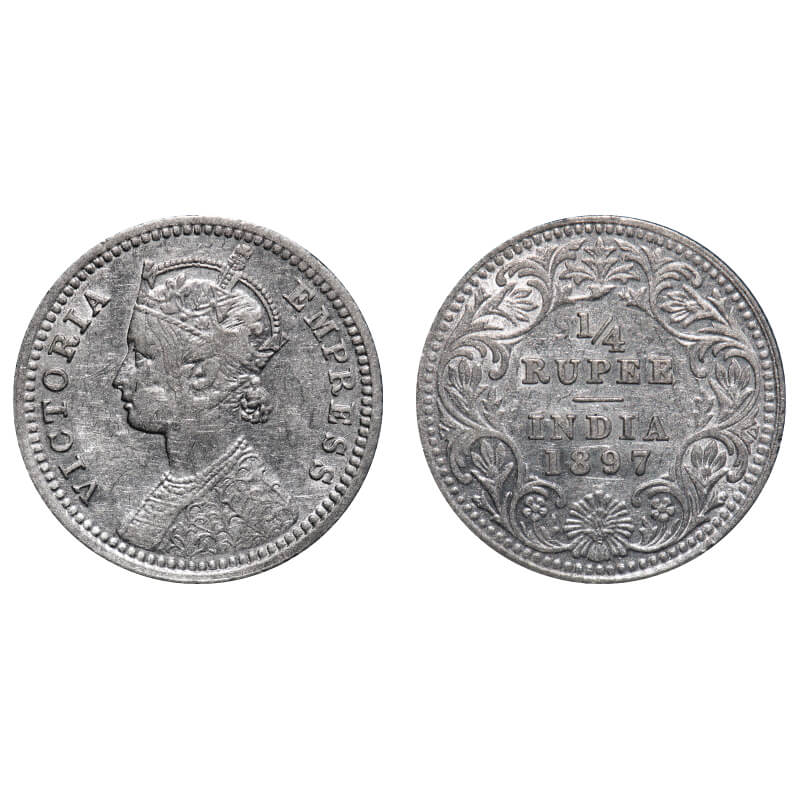 Victoria Empress, Silver, 1/4 Rupee, 1897, Calcutta Mint, C/II, 'C' incused. F. Prid 401. GK 732. Extremely Fine. Very Scarce.
