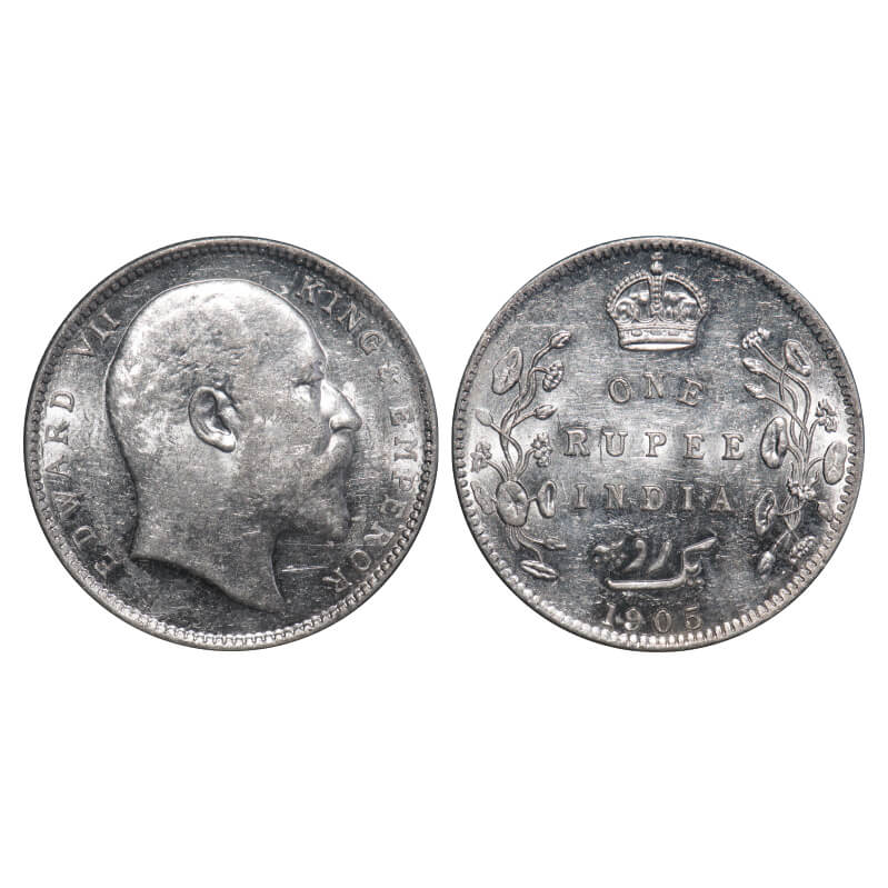 Edward VII, Silver, Rupee, 1905, Bombay Mint, 'B' incused & dot, Top strike of numeral 5 long, Bottom curve of numeral 5 broken. F. Prid 201. GK 936. Mint State. Rare.