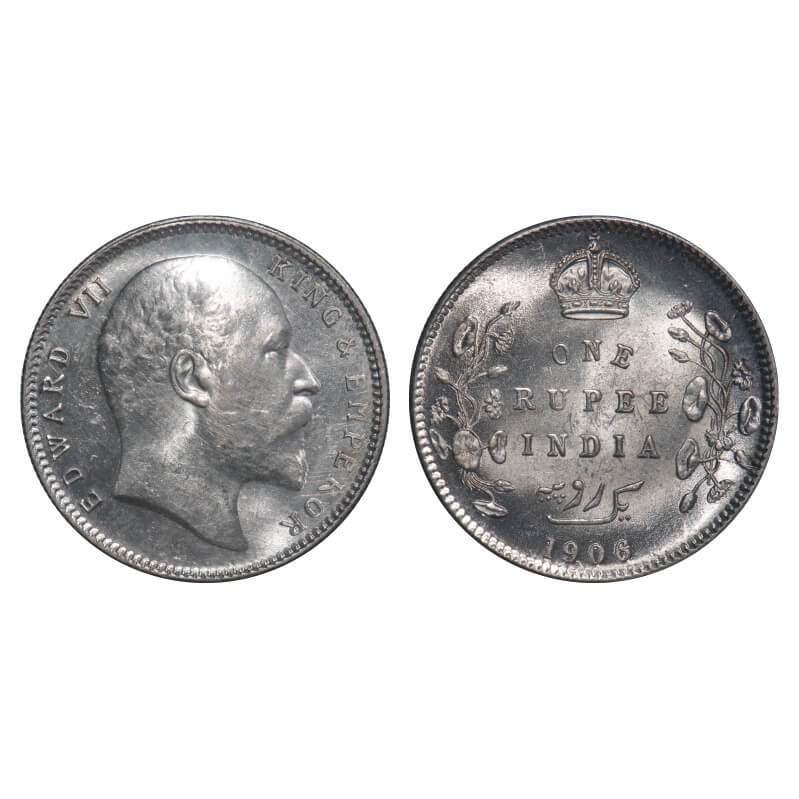Edward VII, Silver, Rupee, 1906, Calcutta Mint, No mint mark, Die cracks on Rev. F. Prid 192. GK 938. Brilliant Uncirculated. Very Rare.