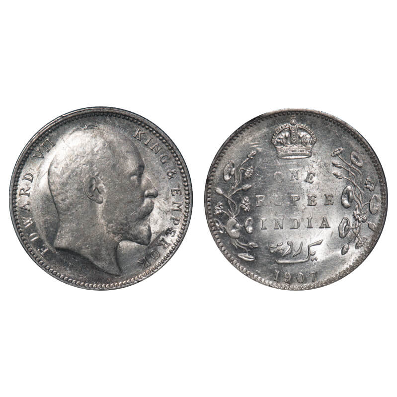 Edward VII, Silver, Rupee, 1907, Calcutta Mint, No mint mark. F. Prid 193. GK 942. Uncirculated. Rare.