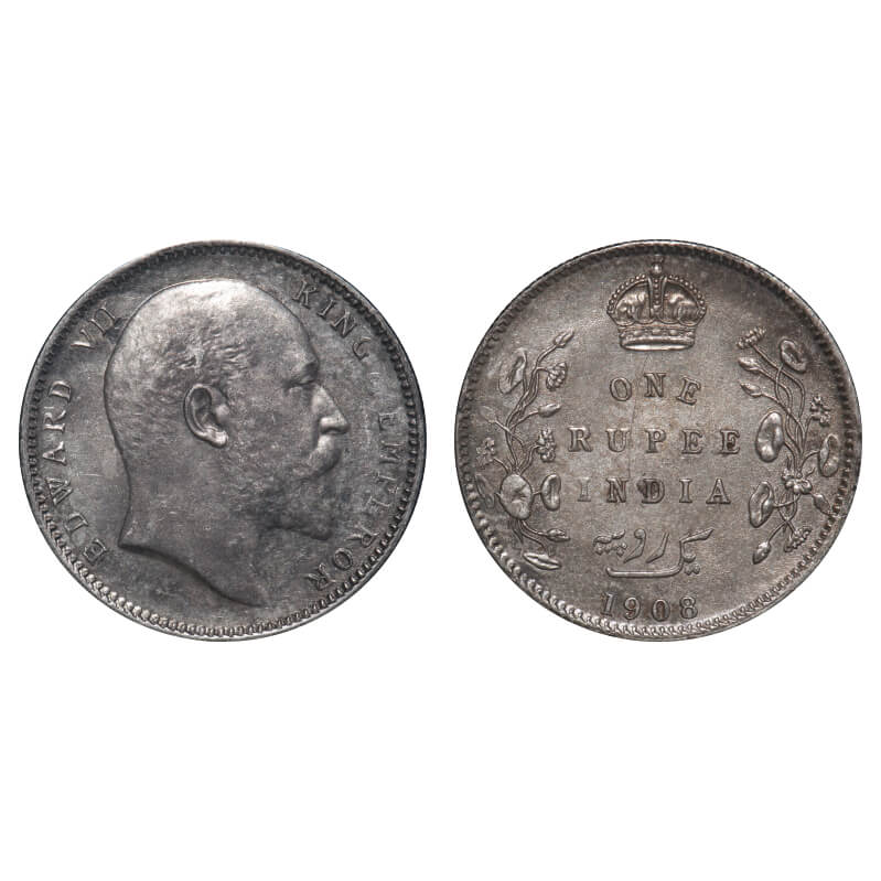 Edward VII, Silver, Rupee, 1908, Calcutta Mint, No mint mark. F. Prid 194. GK 946. Uncirculated, Toned. Very Scarce.
