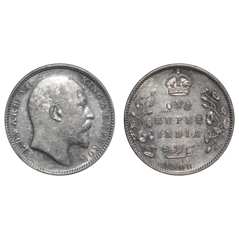 Edward VII, Silver, Rupee, 1908, Calcutta Mint, No mint mark. F. Prid 194. GK 946. Almost Uncirculated. Rare.