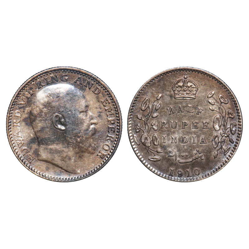 Edward VII, Silver, Half Rupee, 1910, Calcutta Mint, No mint mark. F. Prid 314. GK 971. Extremely Fine, Toned. Very Scarce.