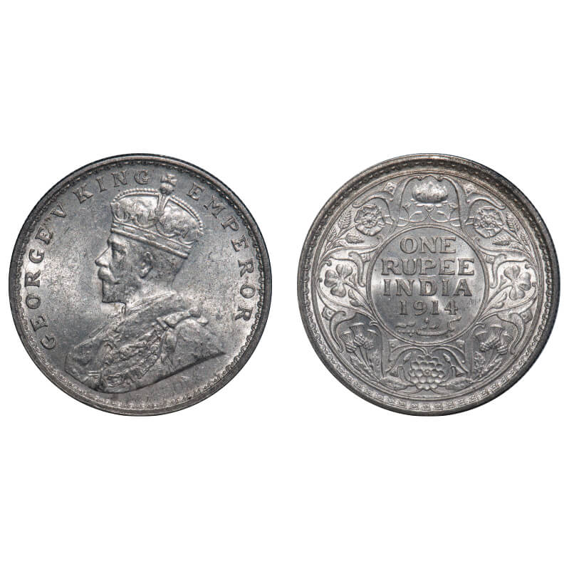 George V, Silver, Rupee, 1914, Bombay Mint, Dot. F. Prid 220. GK 1030. Brilliant Uncirculated. Rare...