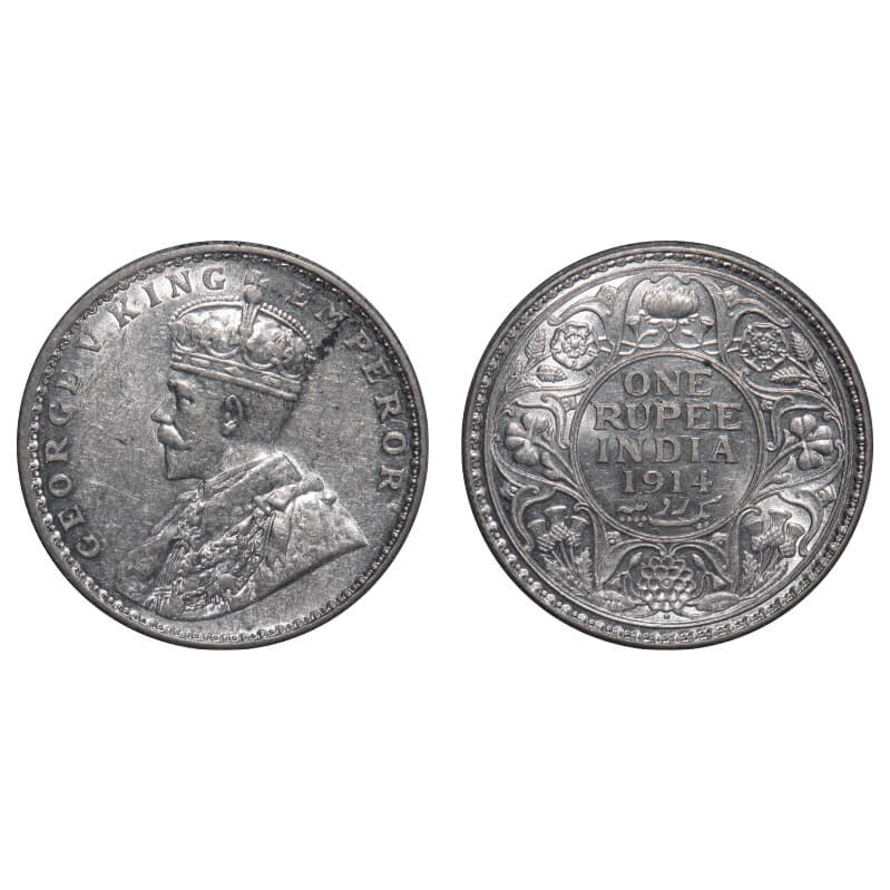 George V, Silver, Rupee, 1914, Bombay Mint, Dot. F. Prid 220. GK 1030. Brilliant Uncirculated. Rare.