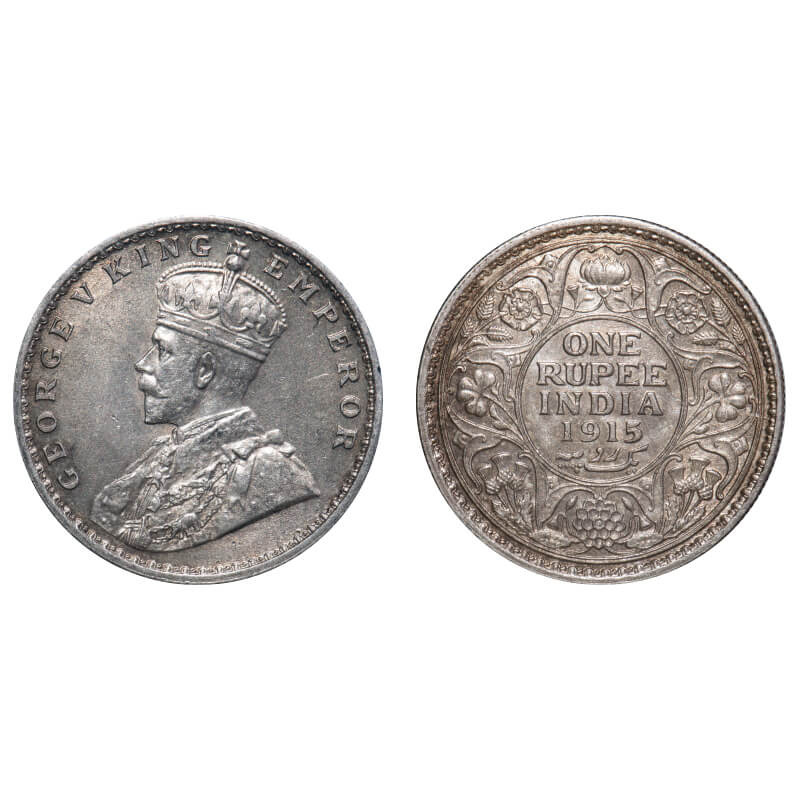 George V, Silver, Rupee, 1915, Calcutta Mint, No dot, Elephant. F. Prid 211. GK 1031. Almost Uncirculated. Rare.