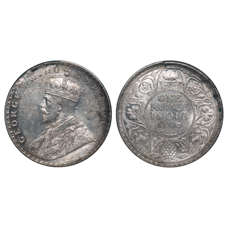 George V, Silver, Rupee, 1916, Calcutta Mint, No dot, Elephant. F. Prid 212. GK 1033. Mint State. R...