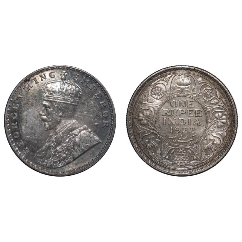 George V, Silver, Rupee, 1922, Bombay Mint, Dot, Elephant. F. Prid 228. GK 1044. Uncirculated, Toned. Rare.