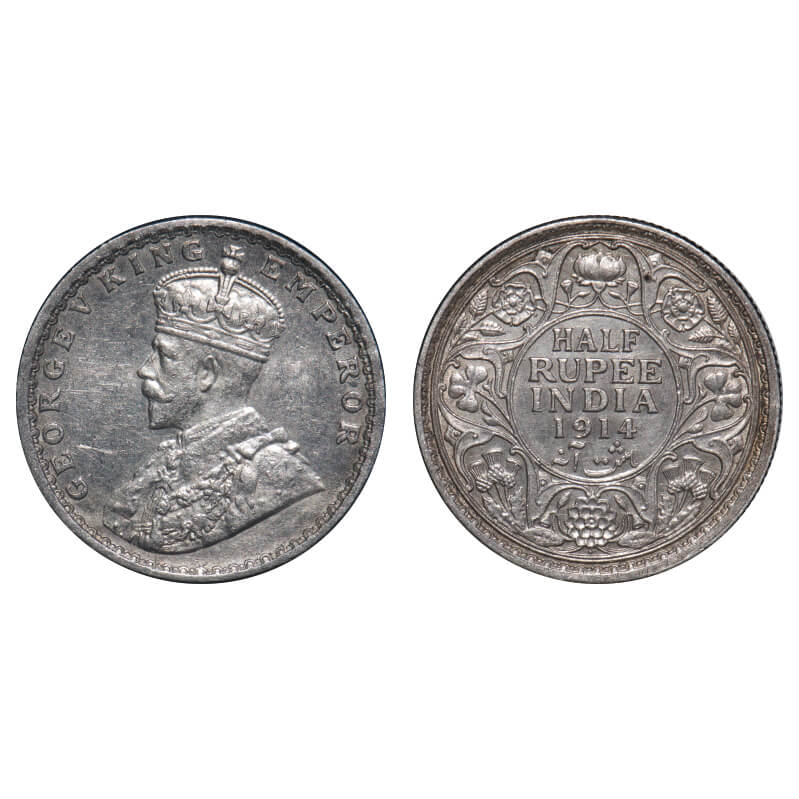 George V, Silver, Half Rupee, 1914, Bombay Mint, Dot, Elephant. F. Prid 338. GK 1051. Almost Uncirculated. Rare.
