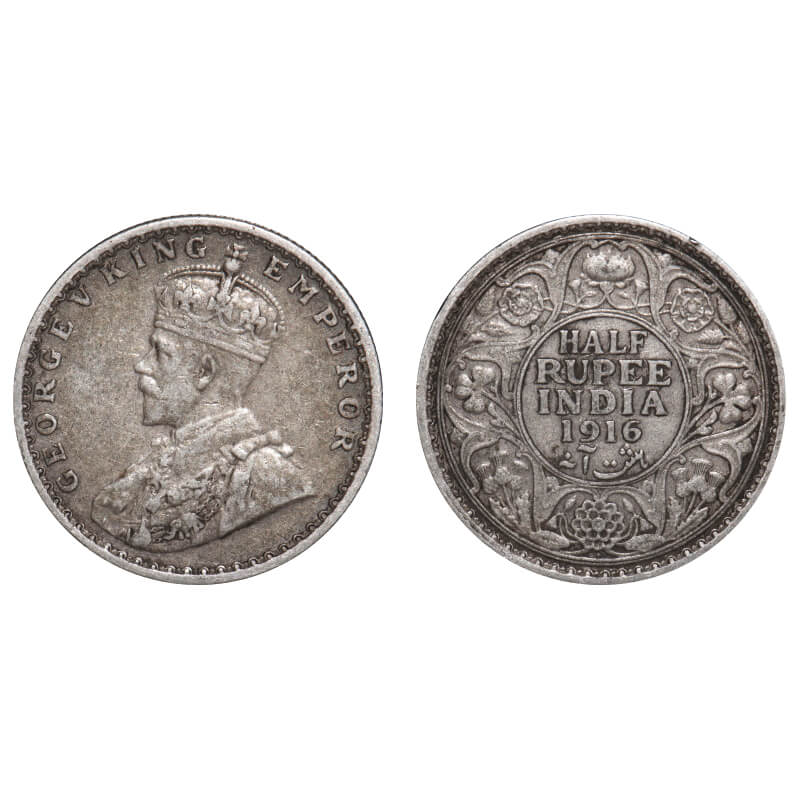 George V, Silver, Half Rupee, 1916, Bombay Mint, Dot, Elephant. F. Prid 340. GK 1054. Extremely Fine. Very Scarce.
