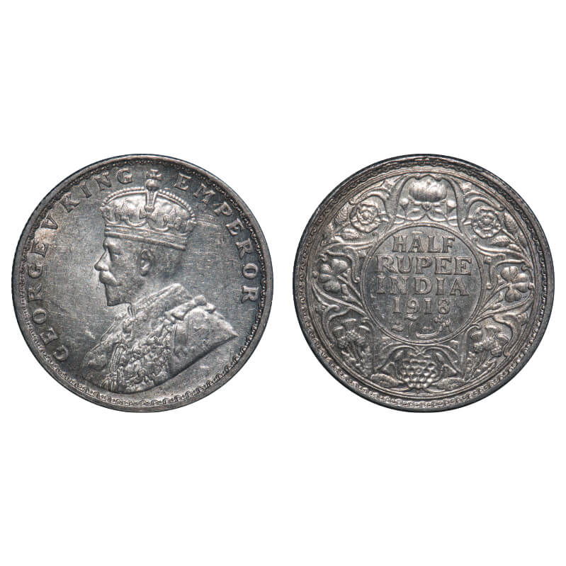 George V, Silver, Half Rupee, 1918, Bombay Mint, Dot, Elephant. F. Prid 342. GK 1056. Uncirculated. Very Scarce.