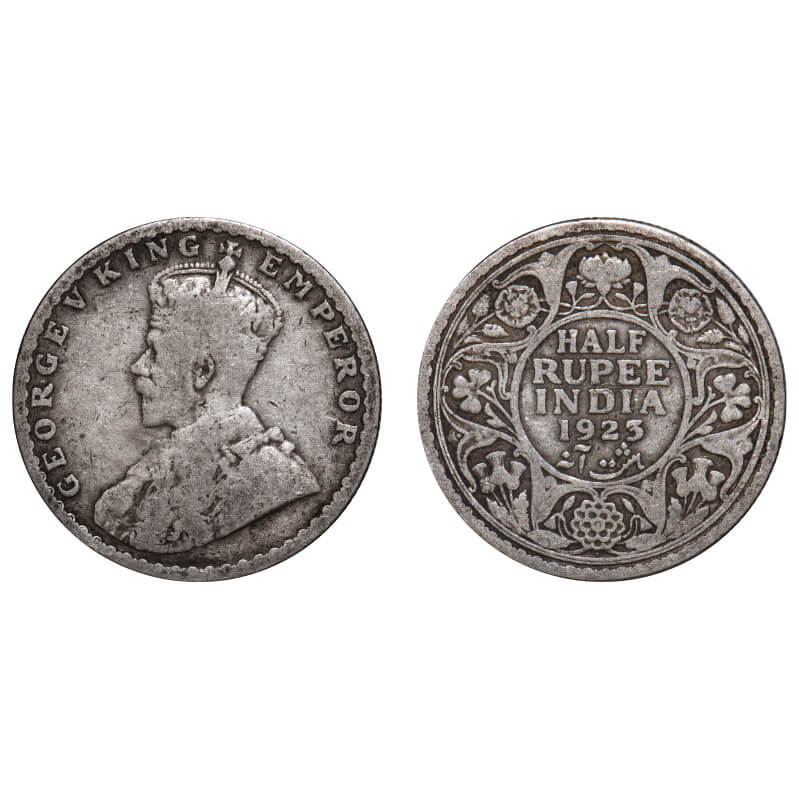 George V, Silver, Half Rupee, 1923, Bombay Mint, Dot, Elephant. F. Prid 345. GK 1062. About Very Fine. Very Scarce.