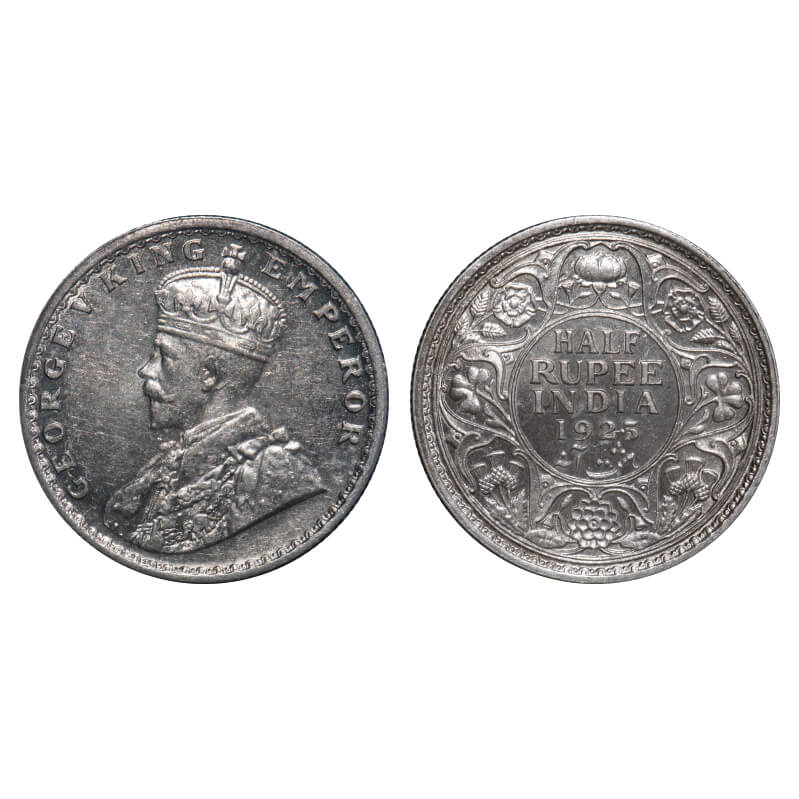 George V, Silver, Half Rupee, 1924, Bombay Mint, Dot, Elephant, Instead of dot as a mint mark there...