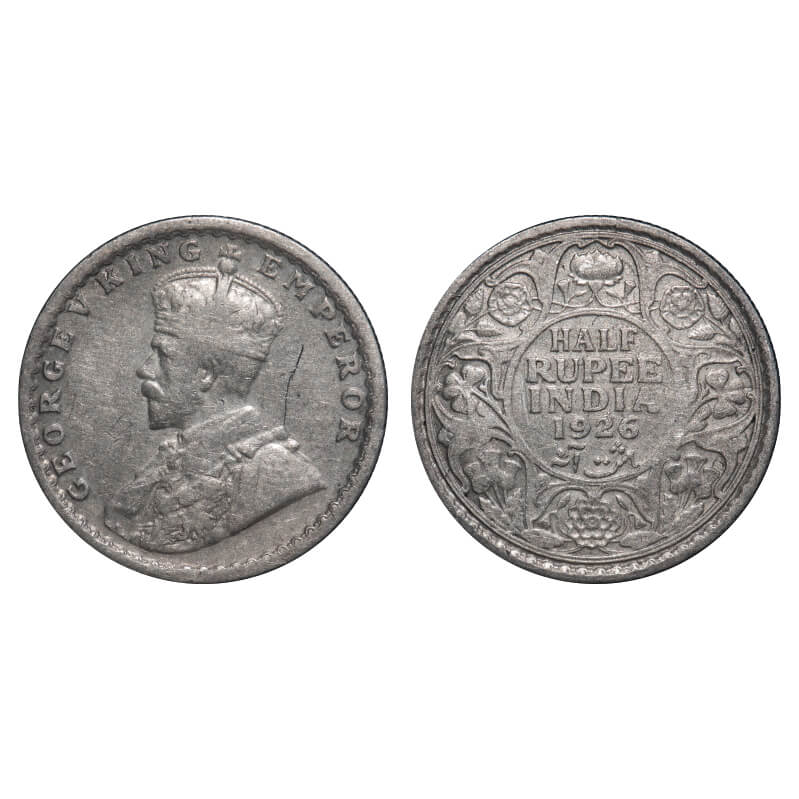 George V, Silver, Half Rupee, 1926, Calcutta Mint, No dot, Elephant. F. Prid 329. GK 1067. Almost Extremely Fine. Very Scarce.