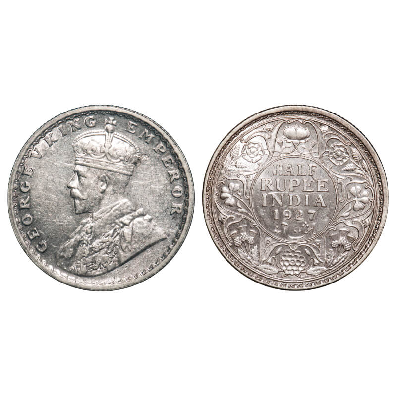 George V, Silver, Half Rupee, 1927, Calcutta Mint, No dot, Elephant, Single Mint coin. F. Prid 330. GK 1069. Uncirculated. Rare.