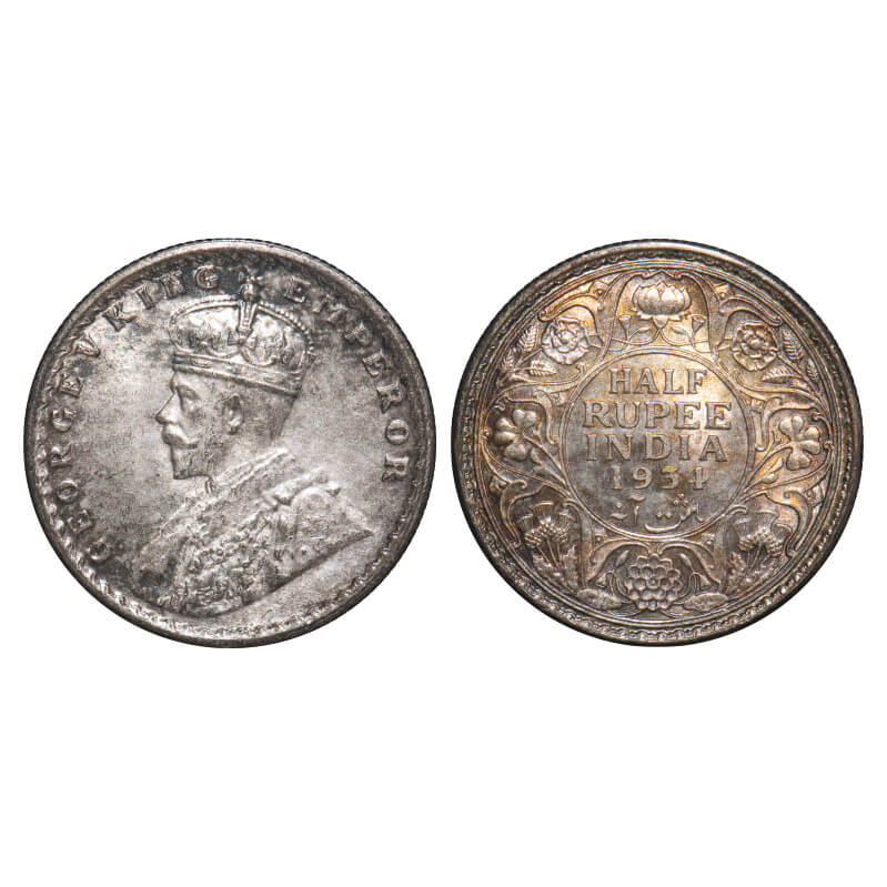 George V, Silver, Half Rupee, 1934, Calcutta Mint, No dot, Elephant. F. Prid 334. GK 1074. Uncirculated, Rev Toned. Very Scarce.