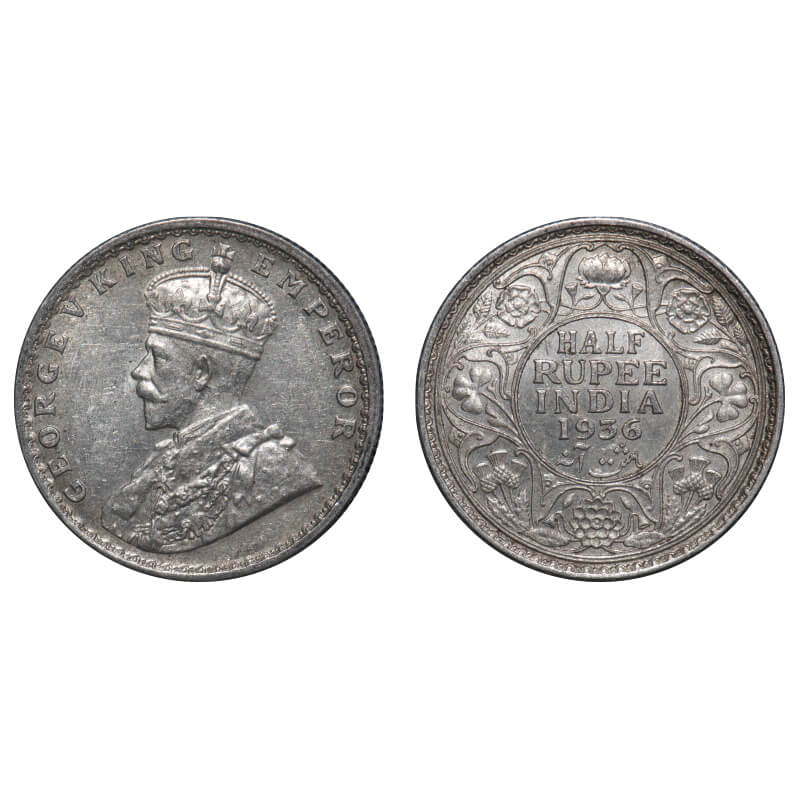 George V, Silver, Half Rupee, 1936, Calcutta Mint, No dot, Elephant. F. Prid 335. GK 1075. About Uncirculated. Very Scarce.
