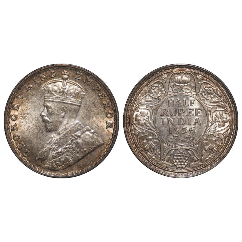 George V, Silver, Half Rupee, 1936, Bombay Mint, Dot, Elephant. F. Prid 350. GK 1076. Mint State, Toned. Rare.