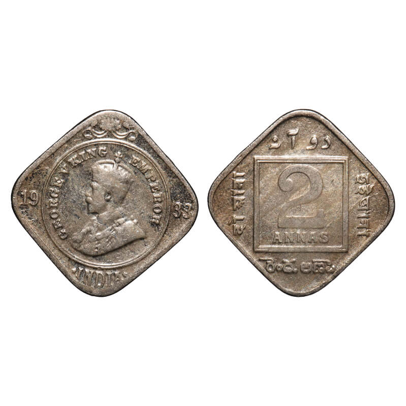 George V, Copper-Nickel, 2 Annas, 1933, Calcutta Mint, No dot. F. Prid 891. GK 1136. Almost Extremely Fine, Toned. Very Scarce.