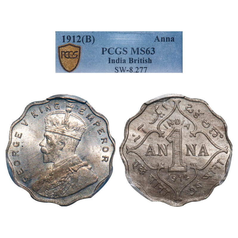 George V, Copper-Nickel, 1 Anna, 1912, Bombay Mint, No dot. F. Prid 942. GK 1142. PCGS Slabbed MS 63. Extremely Rare.