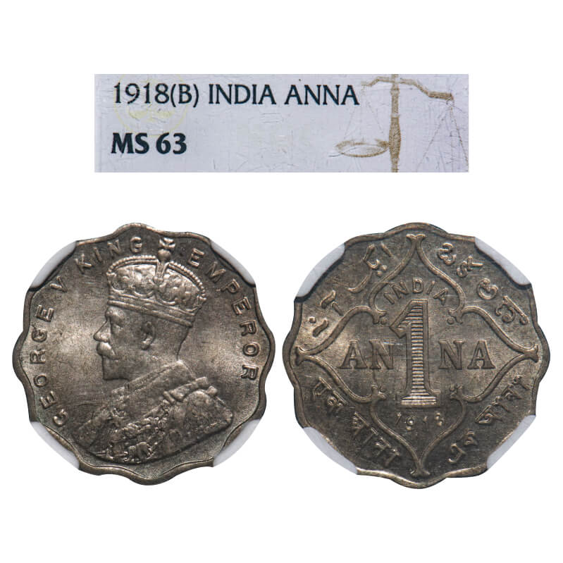 George V, Copper-Nickel, 1 Anna, 1918, Bombay Mint, No dot. F. Prid 948. GK 1148. NGC Slabbed MS 63. Very Rare.
